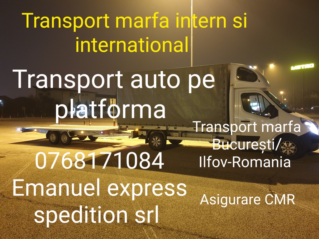 Transport marfa intern si international. Mutări mobila si mărfuri diverse. Dimensiune de incarcare:2200×1900×4700. Preturi accesibile. Ofer servicii complete de transport local/ national/international, transport marfa, mutari firme/persoane(birouri, sedii firme, etc), transporturi personalizate, mutari de mobilier, materiale de constructii, electrocasnice, bagaje si debarasari. Asigur transport cu utilitara VW Crafter 3, 5t, capacitate incarcare 7europaleti, 19 m3. Telefon: 0768 171 084
