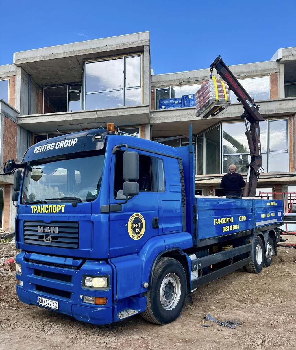 Фирмата се занимава с транспорт: бусове с кран бордови бус самосвал камион 26 тона с кран